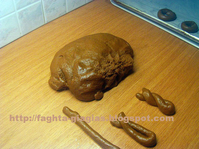 | Παίρνουμε μικρά κομμάτια ζύμης και πλάθουμε στρογγυλά ή ό,τι σχήμα θέλουμε τα μουστοκούλουρα. | |