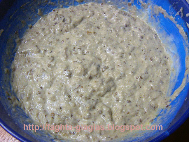 | Παίρνουμε ένα πηρούνι και πολτοποιούμε τις μελιτζάνες, όσο περισσότερο γίνεται (όχι στο μπλέντερ). Τις αφήνουμε 15΄ να κρυώσουν λίγο και αμέσως μετά ρίχνουμε μέσα στις μελιτζάνες το γιαούρτι, το ελαιόλαδο, το ξύδι, το σκόρδο, συνεχίζοντας να τις δουλεύουμε με το πιρούνι μέχρι να δέσουν όλα τα υλικά μαζί. Αλατοπιπερώνουμε, δοκιμάζουμε και αν νομίζουμε ότι χρειάζεται κάτι ακόμη, το προσθέτουμε κατά τη γεύση μας. Την βάζουμε στο ψυγείο να παγώσει δυο - τρεις ώρες και να ενωθούν οι γεύσεις. Την σερβίρουμε με ψιλοκομμένο μαϊντανό, λίγο ελαιόλαδο και μια - δυο ελιές. http://faghta-giagias.blogspot.com | |